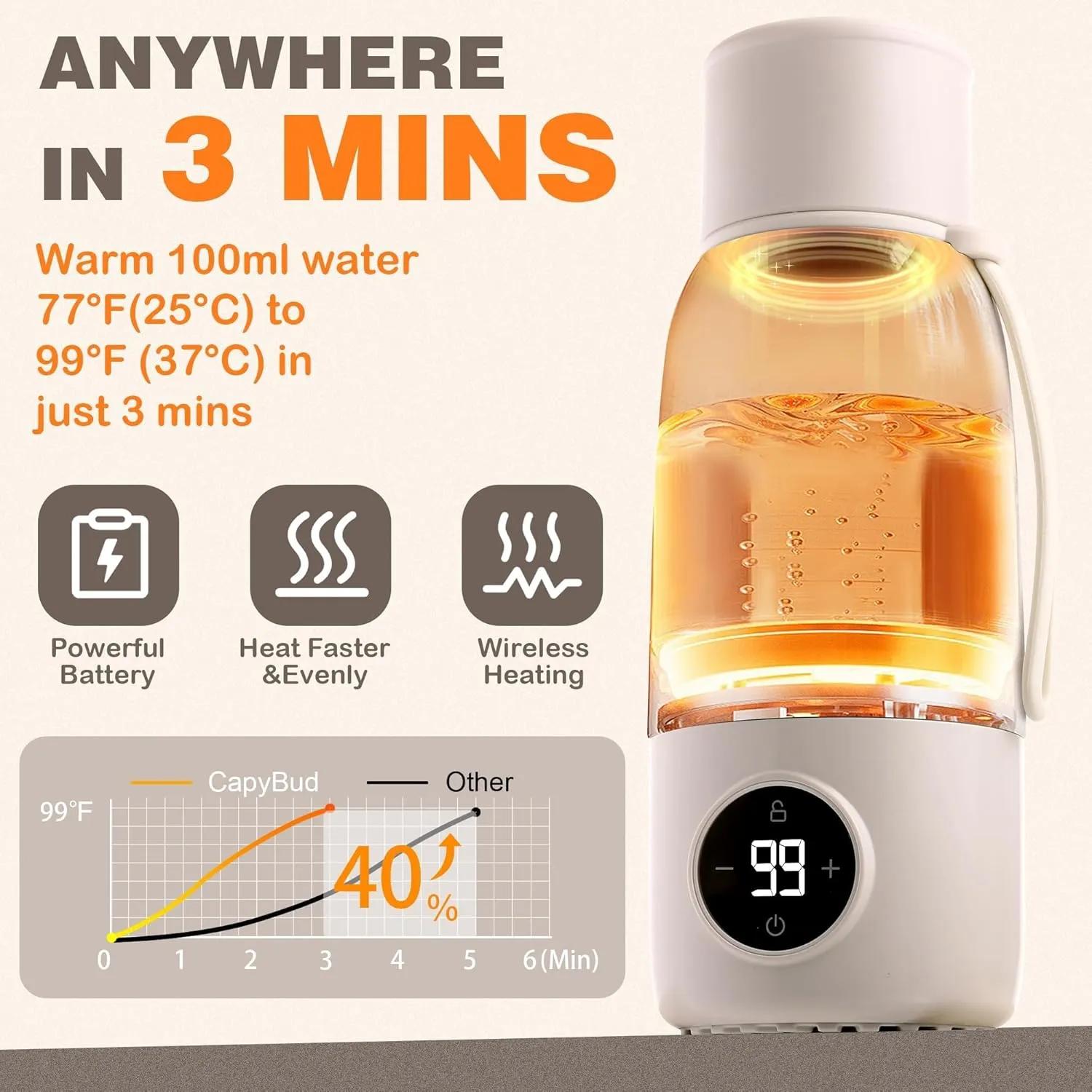 Make feeding on the go easier with this lightweight, rechargeable baby bottle warmer. With fast heating, accurate temperature control, and long-lasting insulation, it’s the perfect travel companion for busy parents.