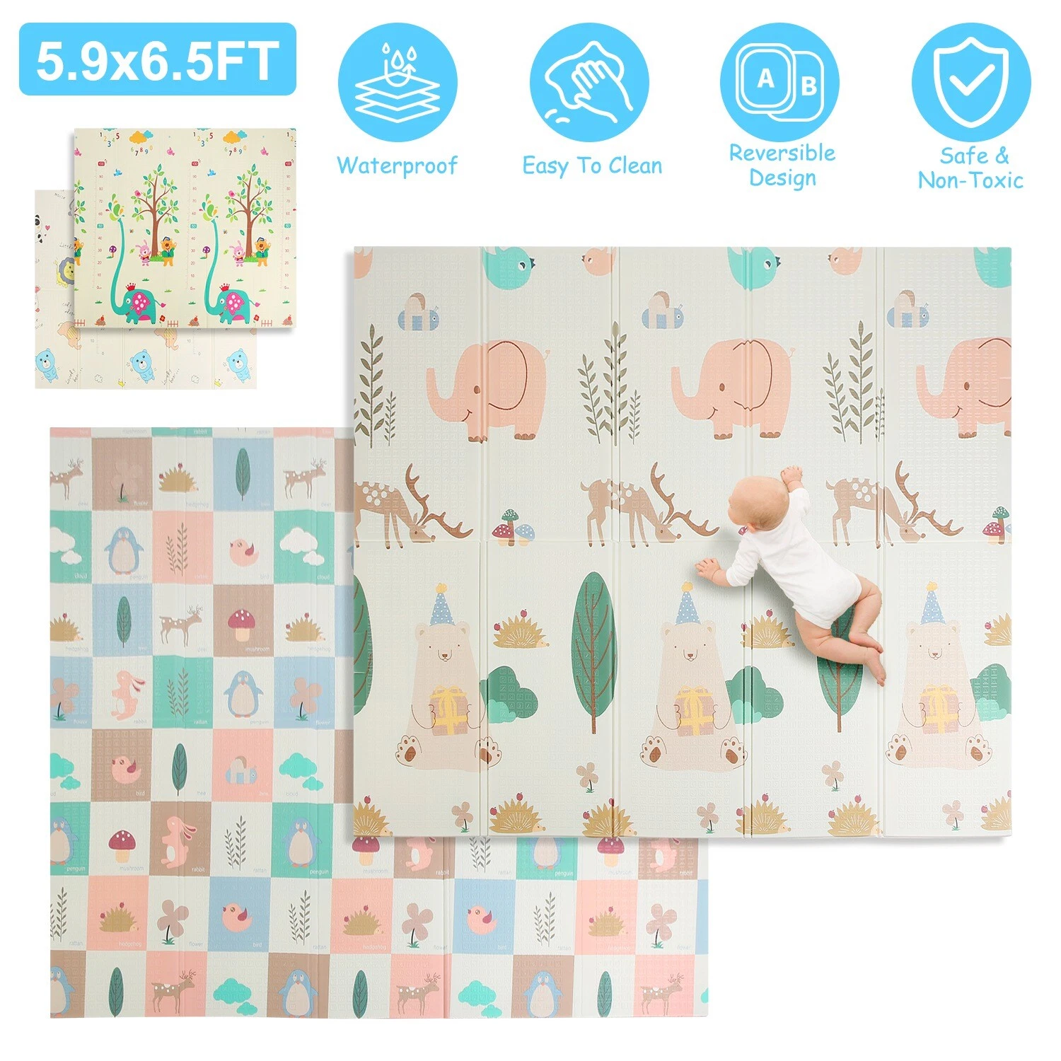Give your little one a safe, comfortable, and spacious place to explore with this extra-large foldable baby play mat. Crafted from high-density, odor-free XPE foam, it provides excellent cushioning and protection while encouraging sensory and motor development. The reversible, educational design features colorful animals, numbers, and letters to keep babies engaged, and it folds easily into a compact size for convenient storage or travel.