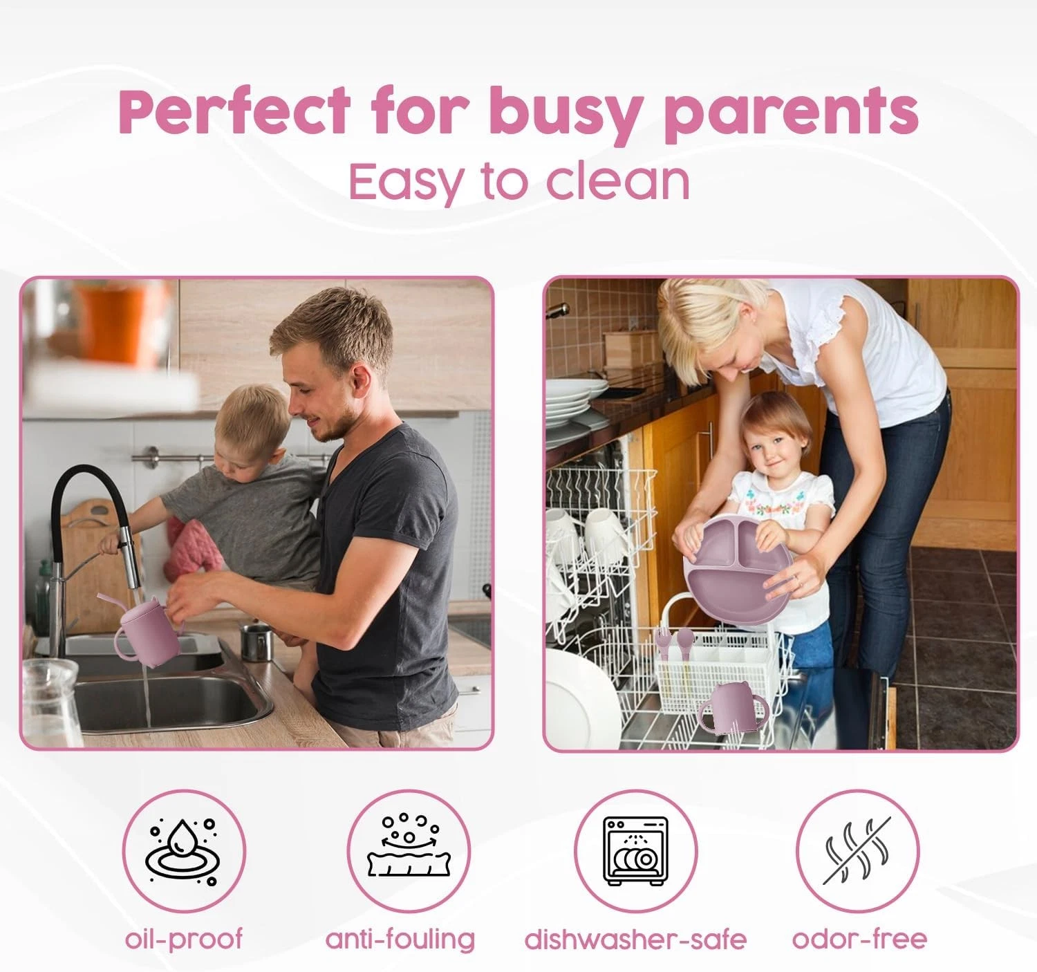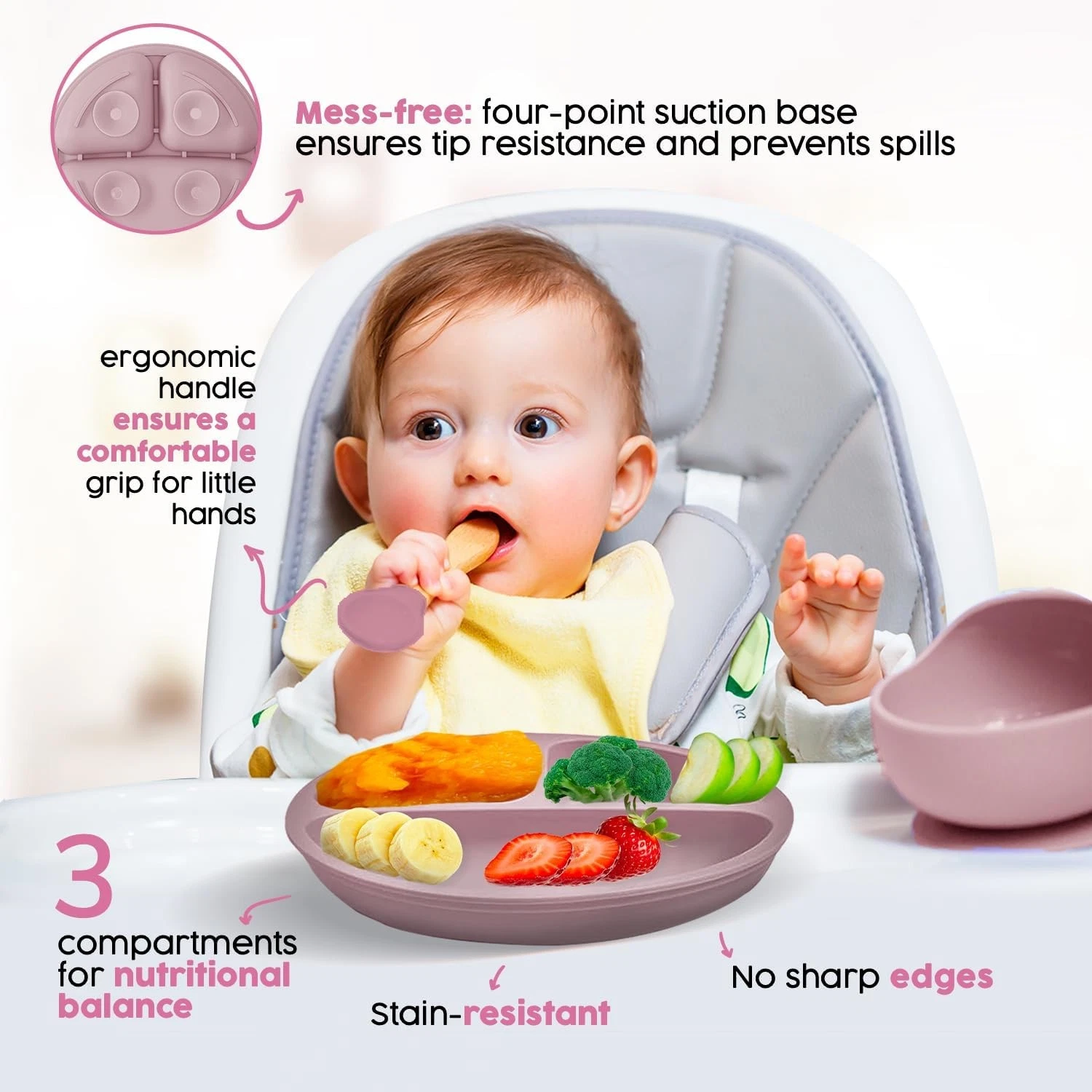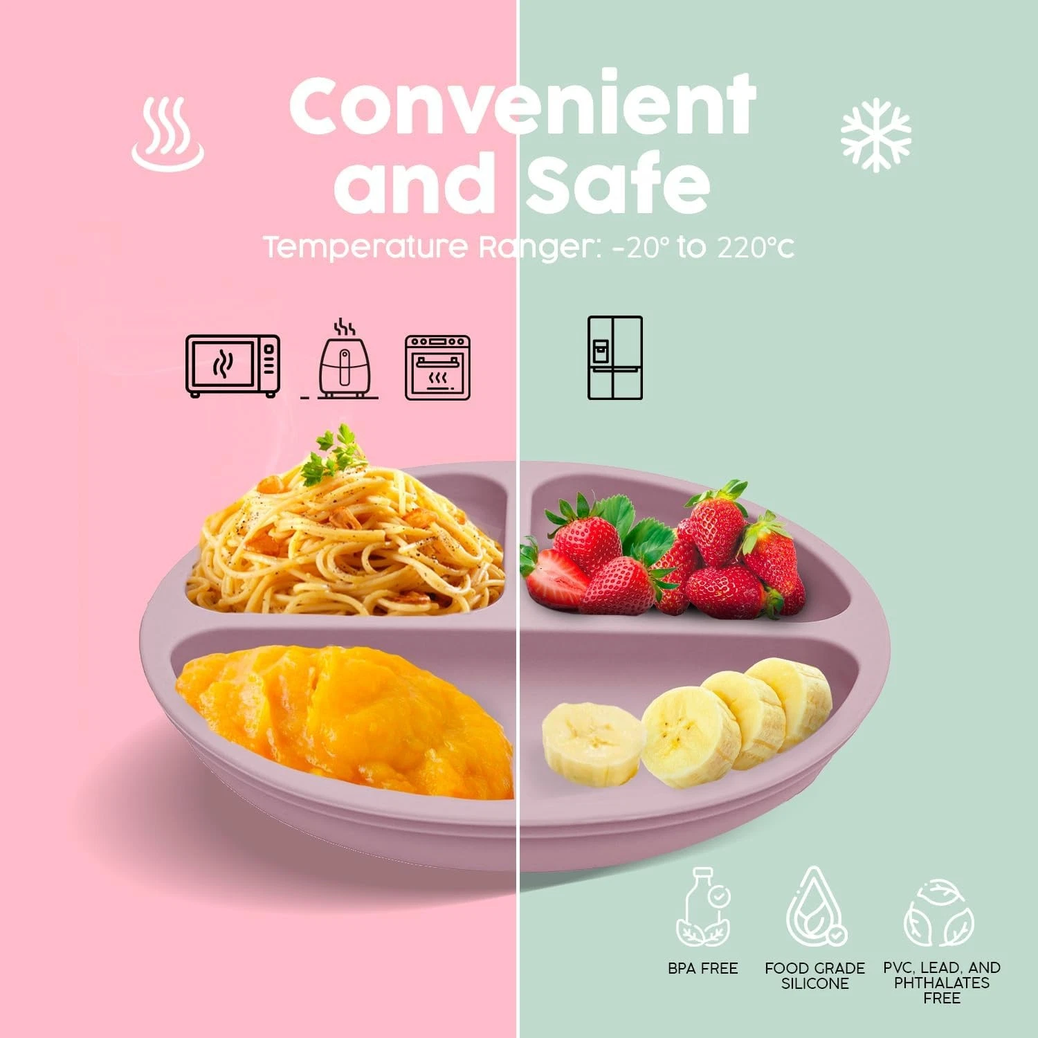Stable & Mess-Free: Strong suction base on both the bowl and plate keeps them firmly in place to minimize spills and mess during mealtime.
